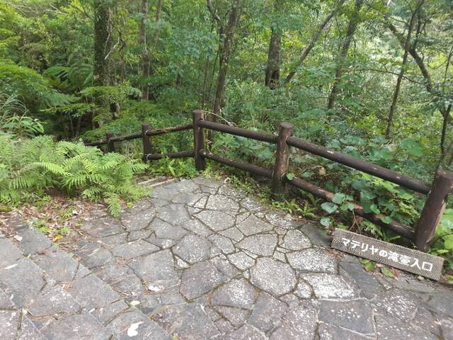 マテリヤの滝へは階段を降りていく。