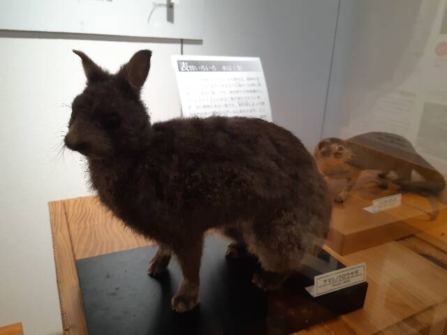 奄美野生生物保護センターにはたくさん剥製がある。これのお陰で、この後アマミノクロウサギと遭遇したときに、アマミノクロウサギだと確信できた。