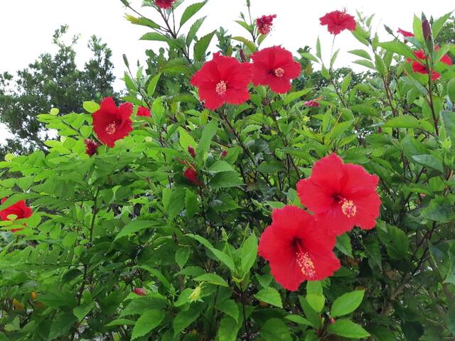 ハイビスカスがそこら中に咲いている。