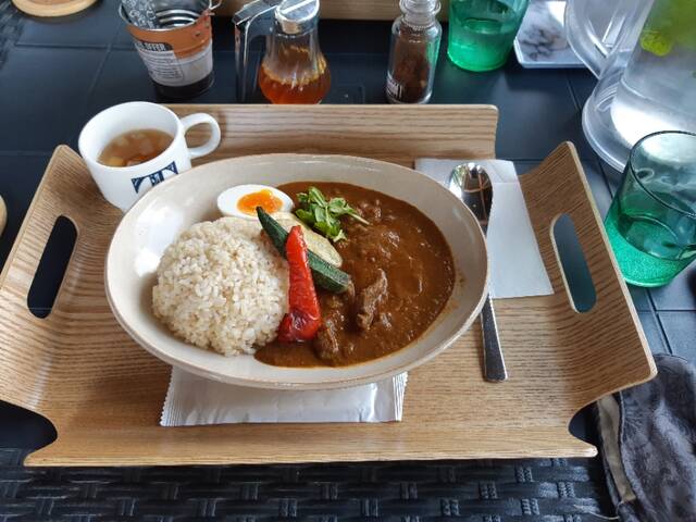 ちょうど正午頃、太陽の島カフェに到着した。電話予約した。メニューはカレーがメイン。