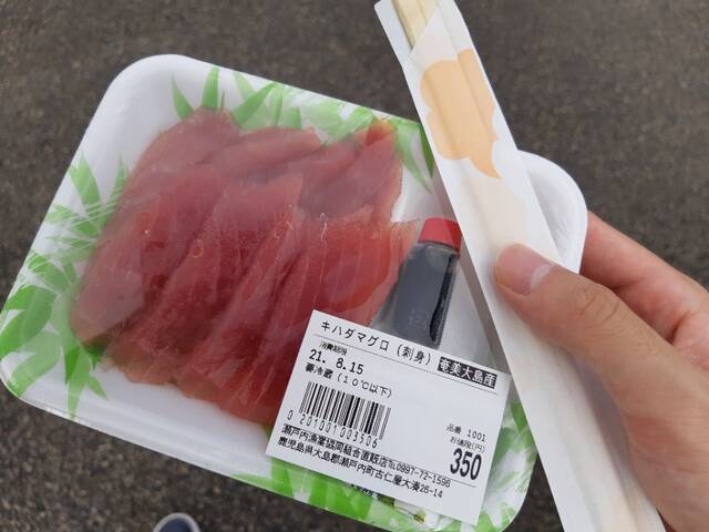 この奄美大島産のマグロの刺身、おいしかったので、加計呂麻島に行った人は全員が全員食べるべきだ。
