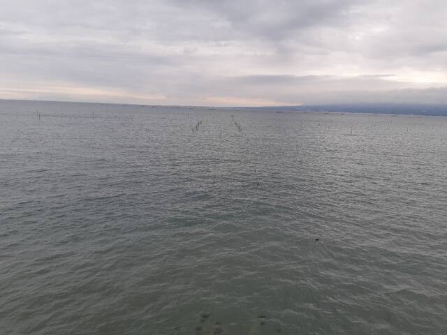 多分諫早駅でしょうか。海がとても迫っていました。