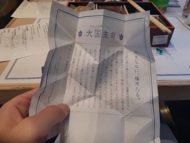 神様のおみくじが引けました。これ、基本的に出雲を走る列車なのでね。