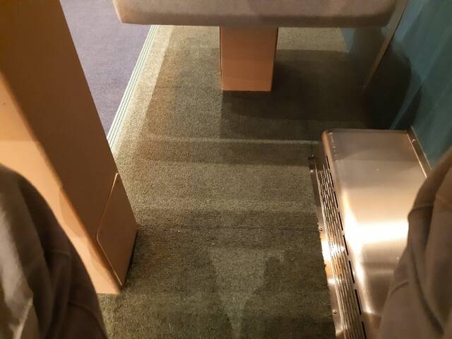 この席は、荷物棚もなく、椅子の下か通路に荷物を置くしかありませんでした。