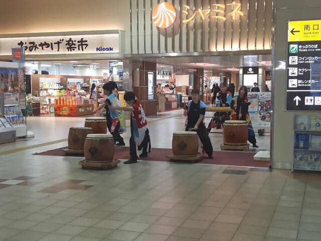 かと思いきや、終点の鳥取駅で太鼓の実演がありました。