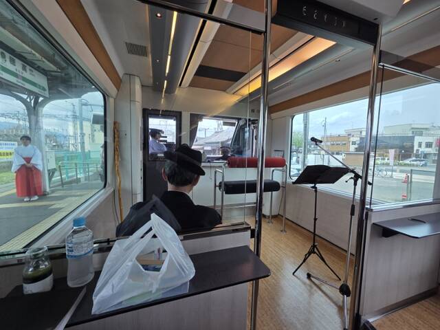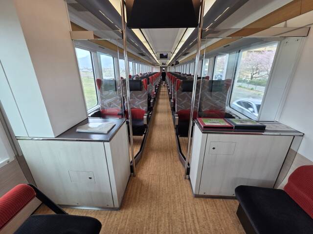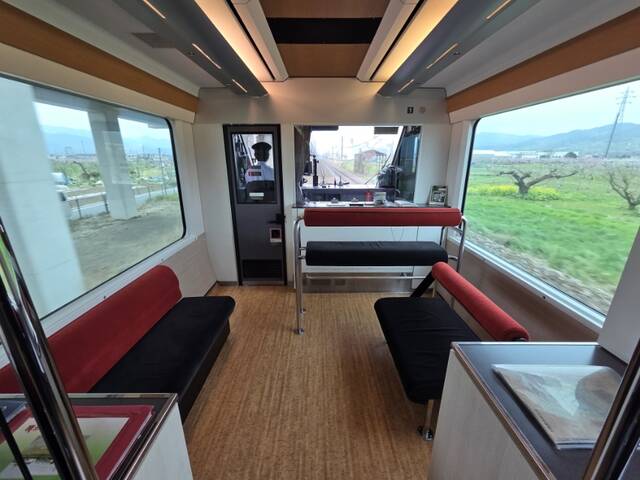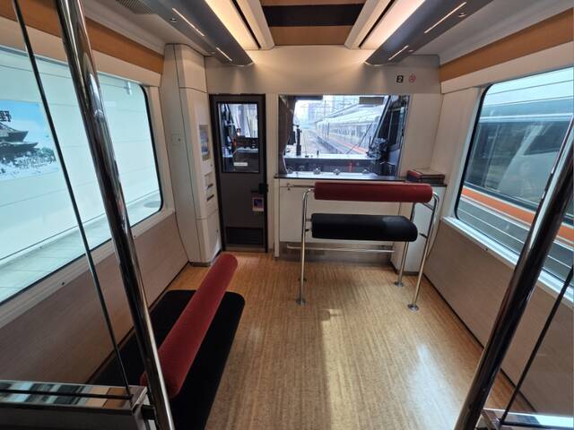 1号車の共用スペースはこんな感じで、自席からの前面展望は期待できません。