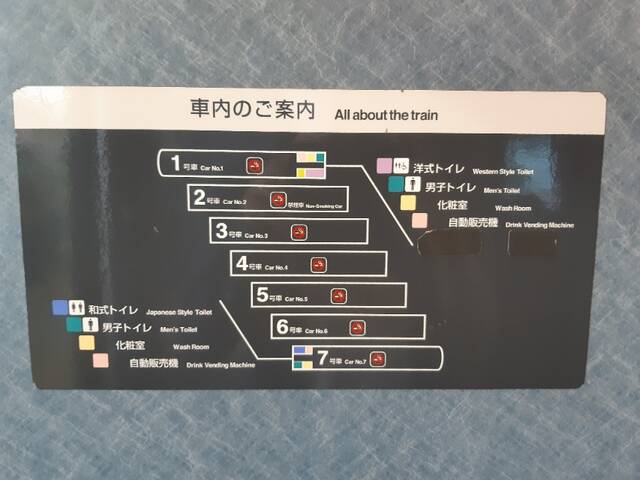洋式は1号車のみなので、和式が嫌な方は号車数の若い車両に乗ってください。