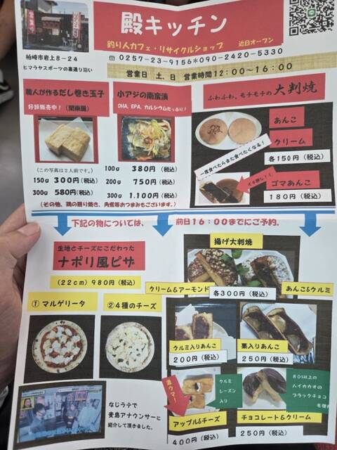 大判焼や事前予約制のピザ、特製のお惣菜などが売られています。テイクアウト専門店なので、鉄道旅との相性は良く、柏崎駅から「しらゆき」や「越乃Shu*Kura」の午後便に乗る方や18キッパーにピッタリ。